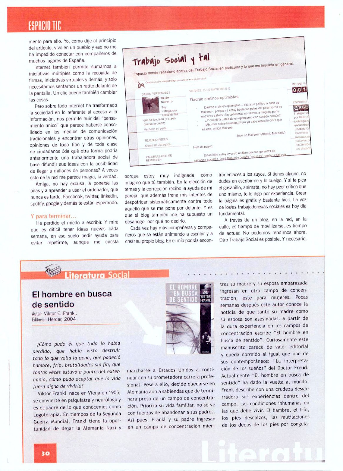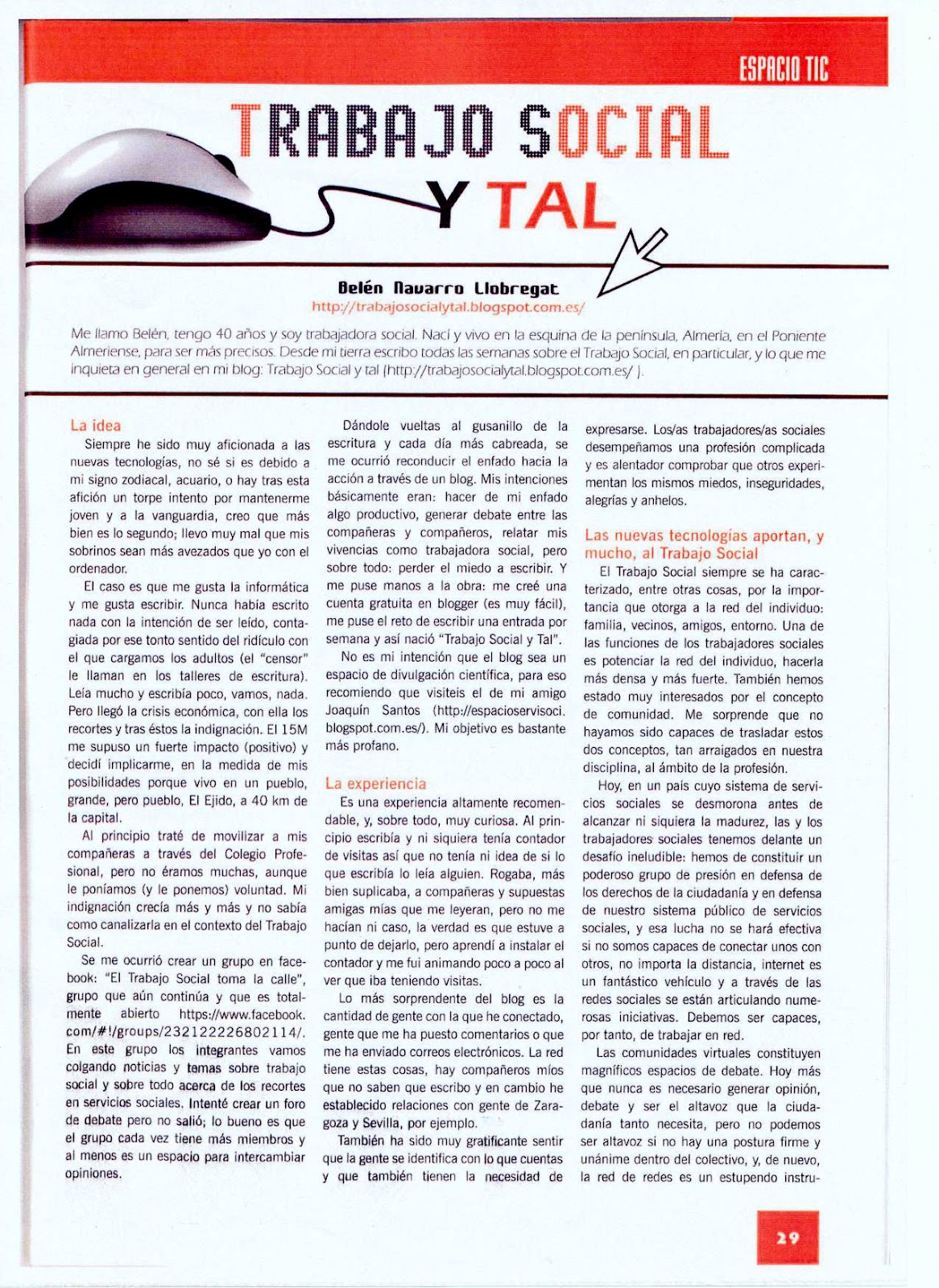 reflexiones, pero no he podido resistirme a compartir con ustedes vosotros este artículo que me han publicado en la revista Trabajo Social Difusión sobre mi blog.