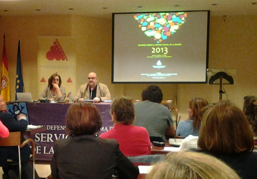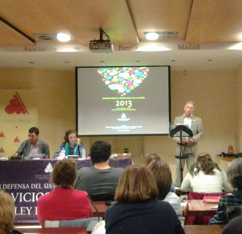 Intervención de Esteban Beltrán. Modera: Carmen Tamayo.El viernes se abrió el turno de conferencias con Ángel Dolado, Juez Decano de Zaragoza, que nos puso también el cuerpo de jota, para qué engañarnos, con su ponencia "La justicia como garante de la igualdad". Analizó cómo se ha cercenado el principio constitucional de igualdad a través de las reformas laboral, de la justicia y de amnistía fiscal, respectivamente. Se cierra el círculo de la desigualdad con los indultos gubernamentales y con la ley de tasas, una verdadera vergüenza para este país. Alertó sobre la reforma que viene del Código Penal, todo un ataque a las movilizaciones ciudadanas (a estas alturas todos los asistentes estábamos para el valium, el cartón de vino o ambas cosas al escuchar tanta mala noticia). También puso sobre la mesa la realidad penitenciaria y recomendó la lectura del libro de Mercedes Gallizo, ex secretaria general de instituciones penitenciarias. Tendrás la oportunidad de leer una crítica de este libro próximamente en este blog.Cerró su magnífica conferencia citando un libro que no pude apuntar de una autora italiana, así que ruego que si alguien que me lee estuvo allí y se sabe el título que me lo diga para poder comprarlo, es que estaba tuiteando su discurso final, que me tenía embobada, y una ya no está para multitareas.Tras la entrega de premios varios, entre los que destacaré el Premio "Corazón de Piedra" a Ana Mato, nos marchamos a comer. En la jornada de tarde (y última), destacados miembros de la asociación, entre ellos, Luis Barriga, Ángel Parreño y María Jesús Brezmes analizaron temas clave de la asociación, entre ellos el índice DEC, que mide el desarrollo de los servicios sociales por comunidades, aquí, los últimos datos sobre dependencia, la reforma local y lo sociosanitario.Las conclusiones que pude obtener de todo lo dicho son: