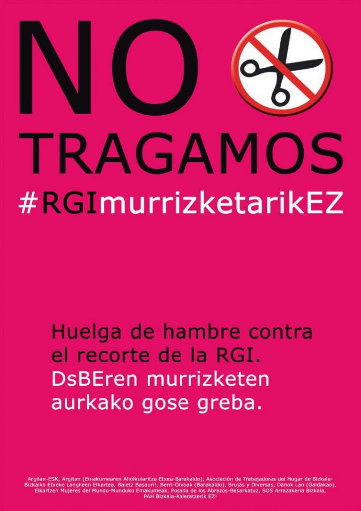 - COLECTIVOS SOCIALES: Argilan-ESK, Argitan (Centro Asesor de la Mujer, Barakaldo), Asociación de Trabajadoras de Hogar de Bizkaia, Baietz Basauri!, Berri-Otxoak (Barakaldo), Brujas y Diversas, Danok Lan (Galdakao), Elkartzen, Mujeres del Mundo, Posada de los Abrazos/Besarkatuz, PAH Bizkaia-Kaleratzerik EZ!; SOS Racismo; Erletxea (Punto Información y Agitación Social, Irún); Plataforma de Afectad@s por Lanbide de Gipuzkoa.